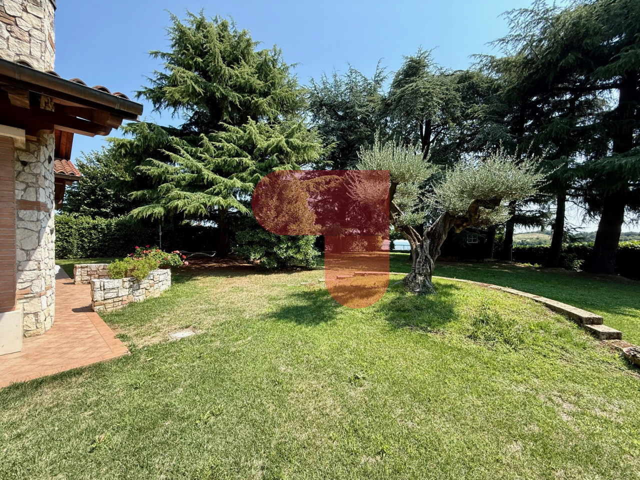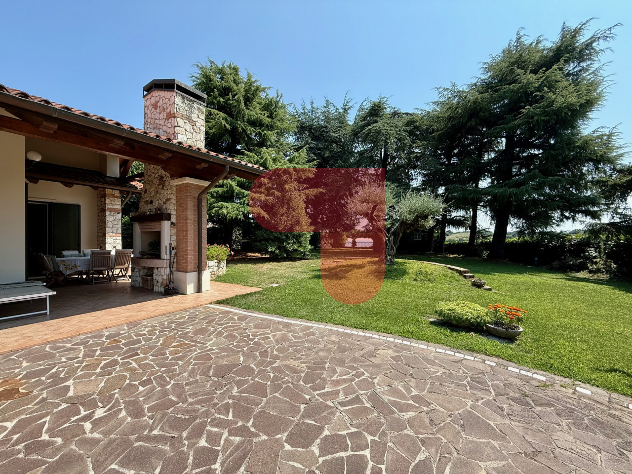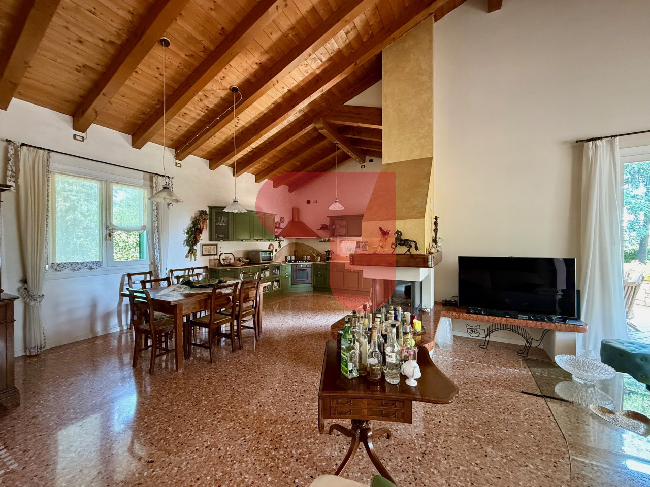 La zona giorno è caratterizzata da un'accogliente sala dove da un comodo divano si può ammirare il camino e il giardino, attraverso le ampie vetrate. La cucina spaziosa si affaccia sul giardino di proprietà. Sempre al piano terra si trovano due camere, un bagno e una lavanderia, tali da rendere vivibile la casa su un unico livello.